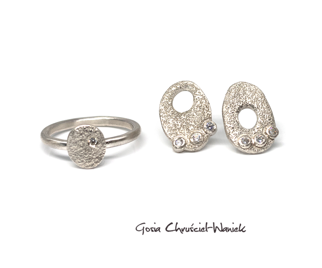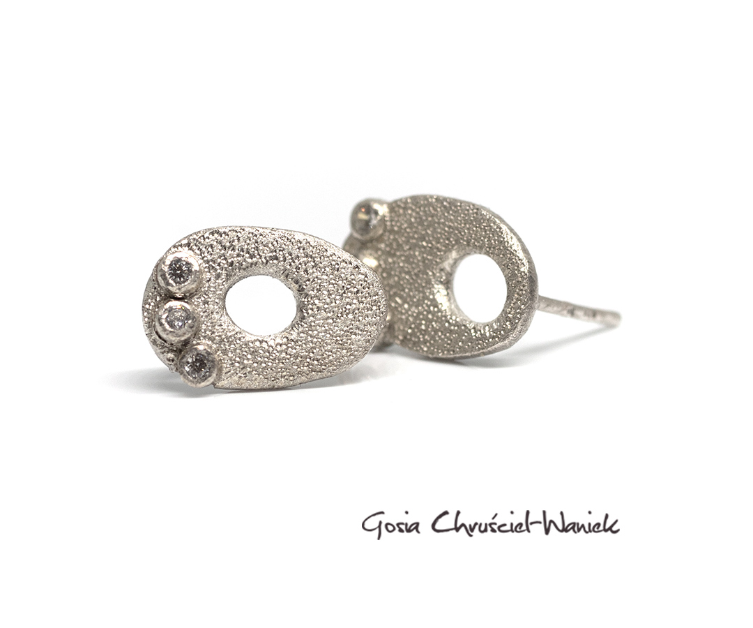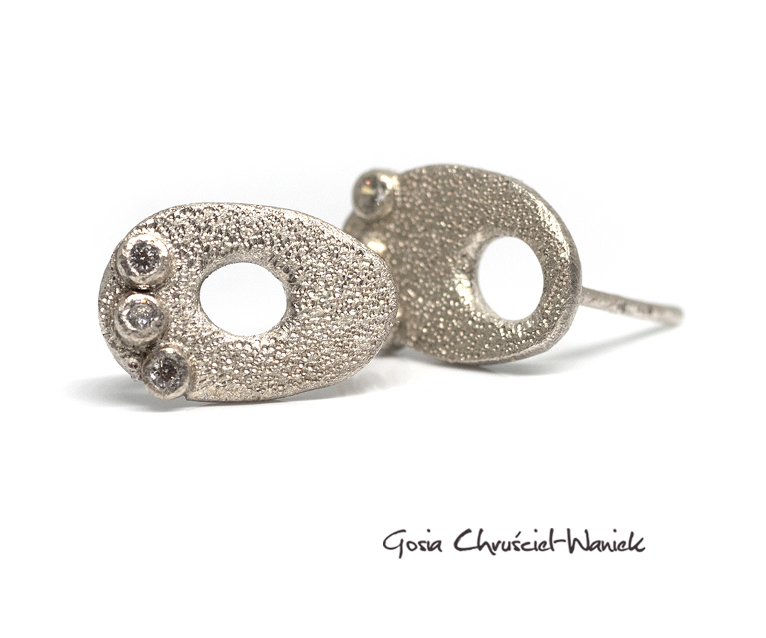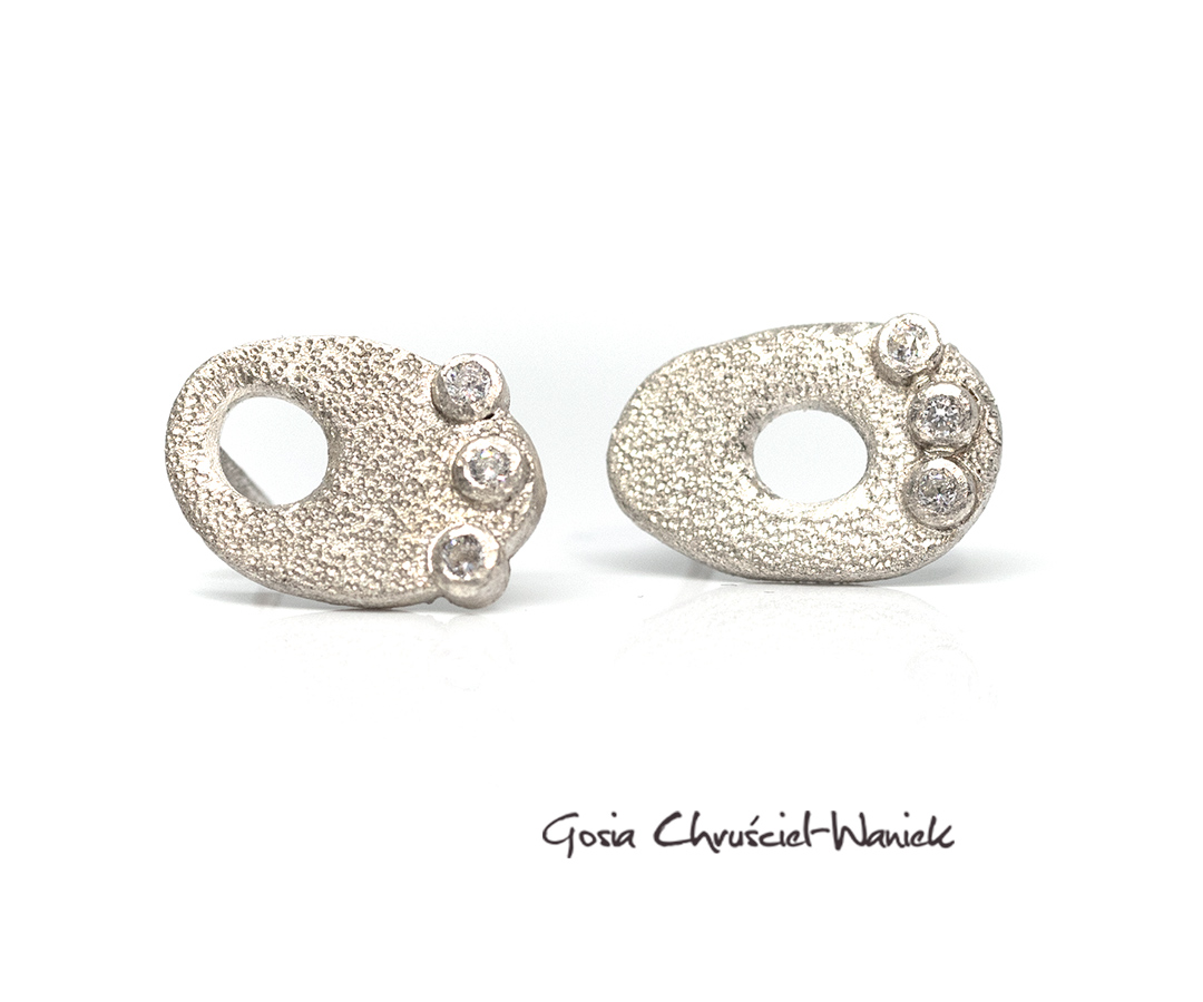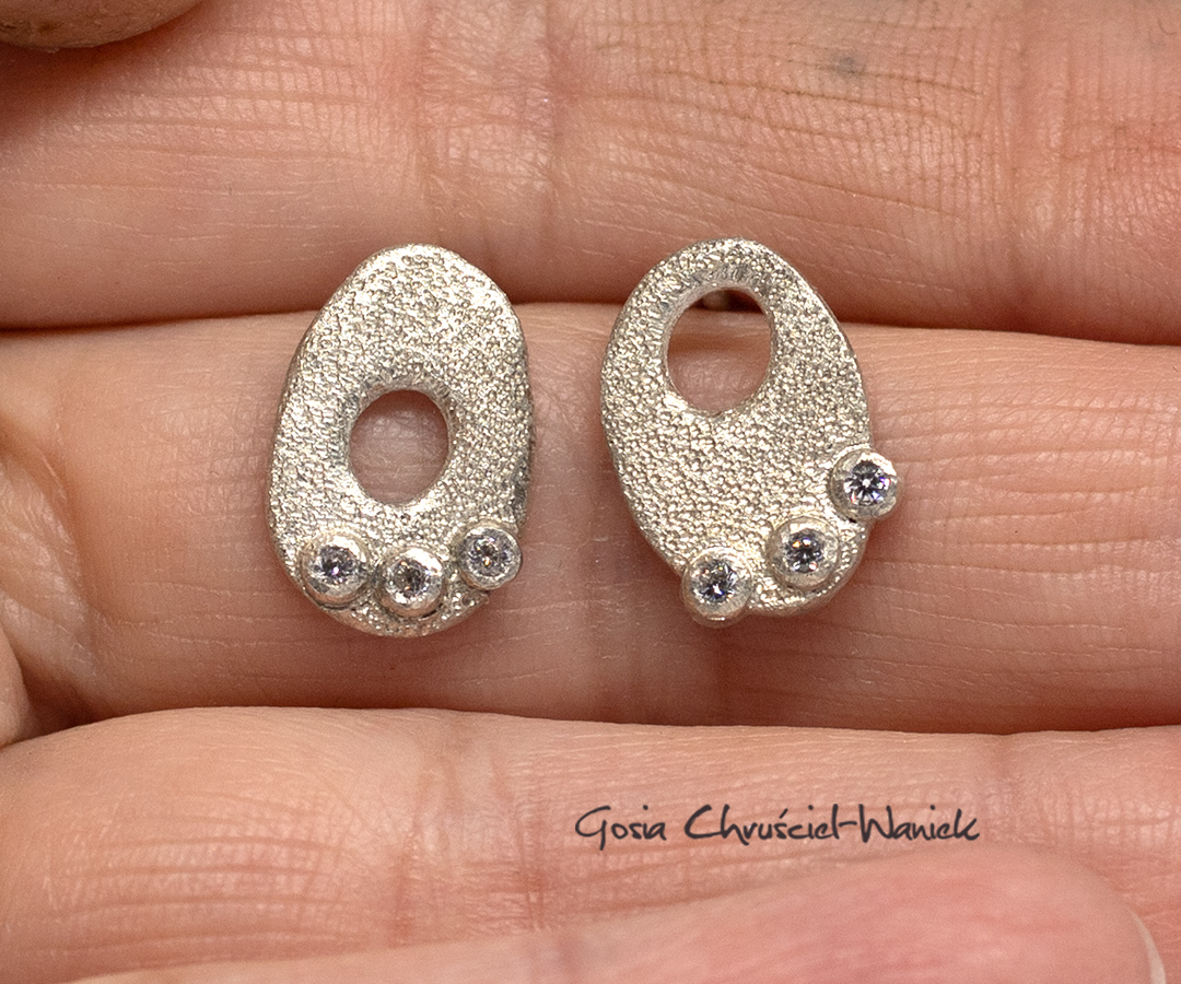 Kolczyki sztyfty wykonane ręcznie ze srebra pr. 925, z moissanitami, które pięknie odbijają światło.