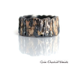 Obrączki wykonane ręcznie ze srebra pr. 925 i złota pr. 585.
