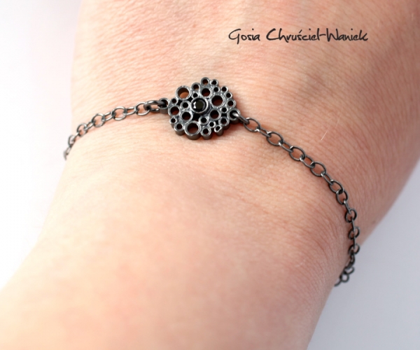 Bransoleta wykonana z oksydowanego srebra pr. 925 z czarną cyrkonią.