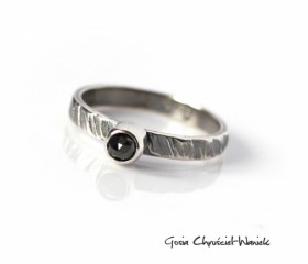 Pierścionek wykonany ze srebra pr. 925 z czarnym diamentem o szlifie rozetowym. Praca oksydowana i polerowana.