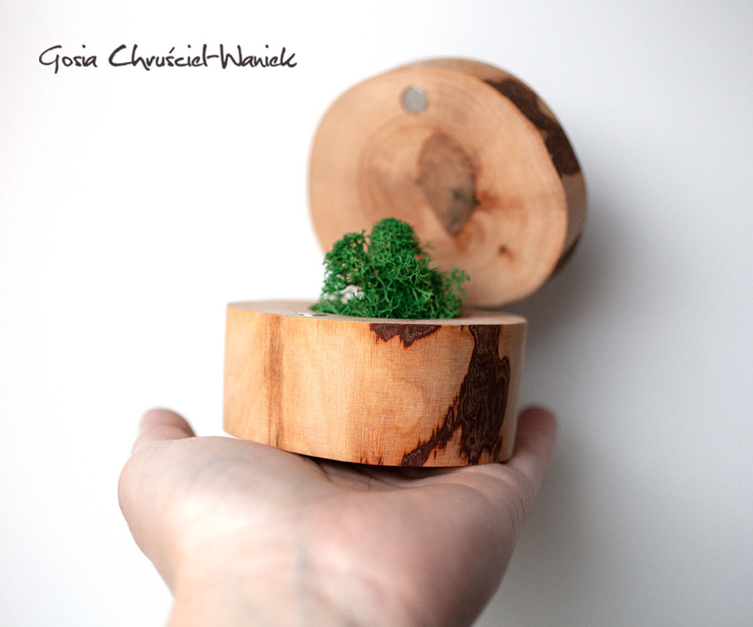 Drewniane pudełko z mchem