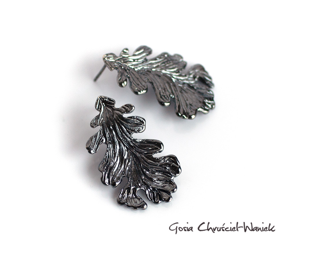 Kolczyki wykonane ze srebra pr. 925, oksydowane.