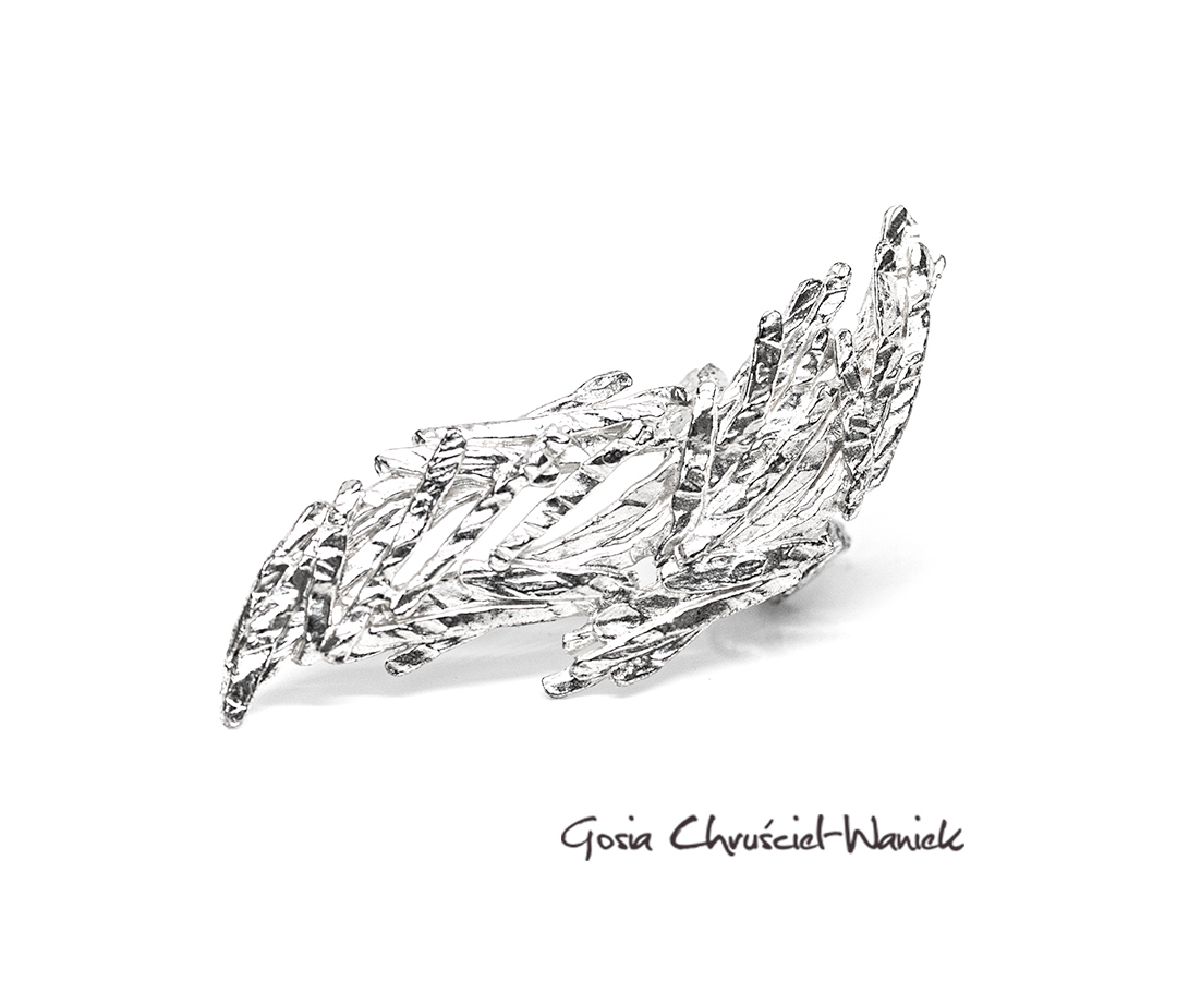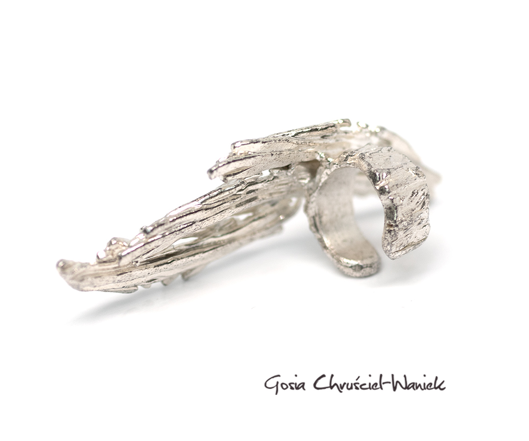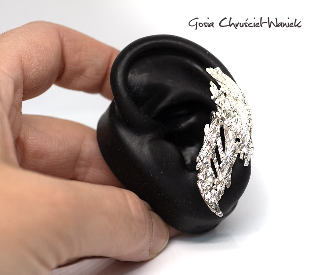Duża nausznica z kolekcji Wings wykonana ze srebra pr. 925. Nausznica na LEWE UCHO.