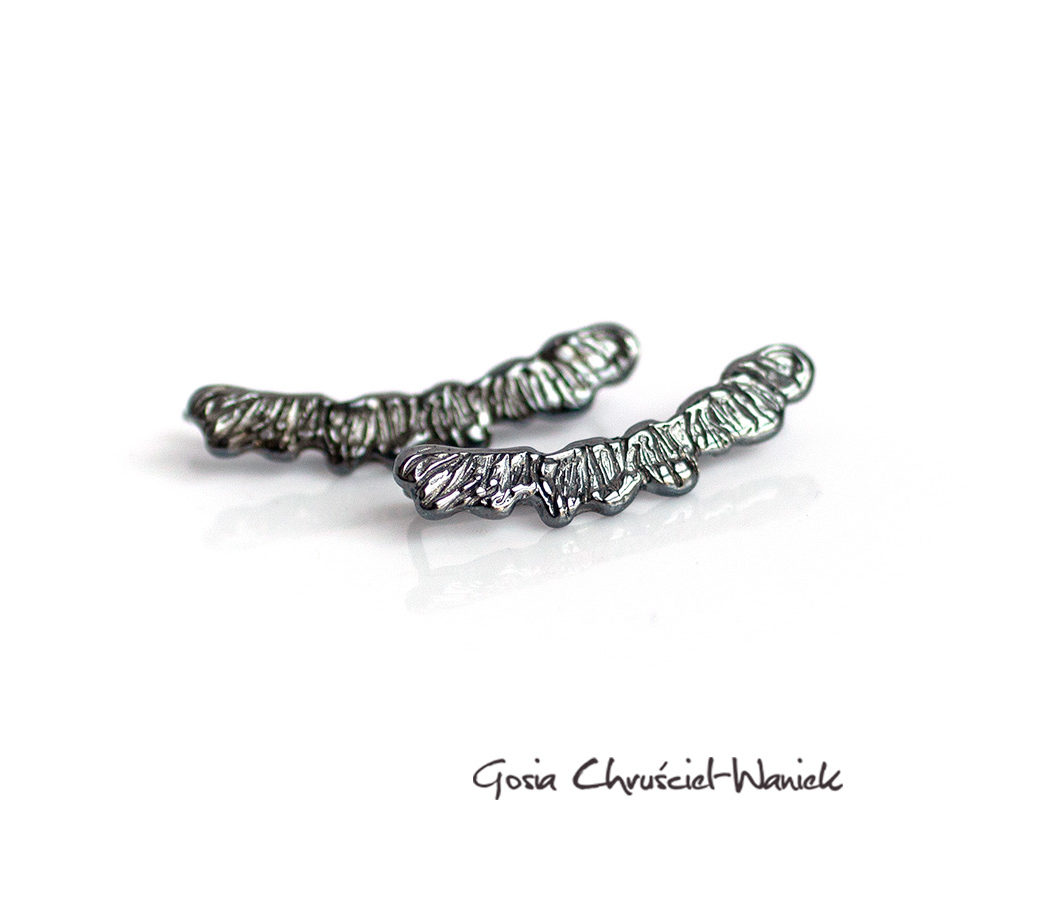 Nausznice/kolczyki wykonane ze srebra pr. 925, oksydowane.