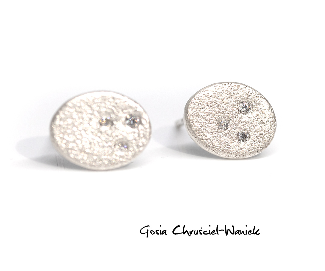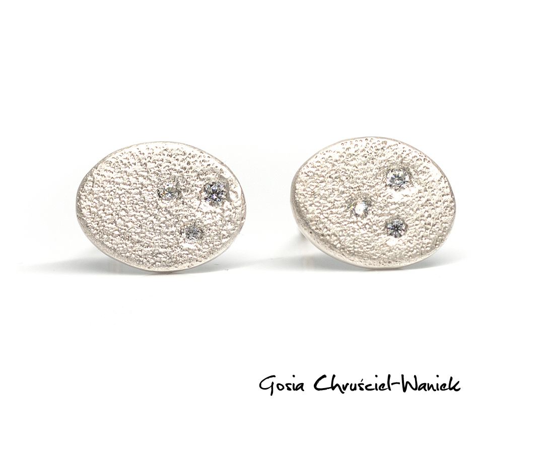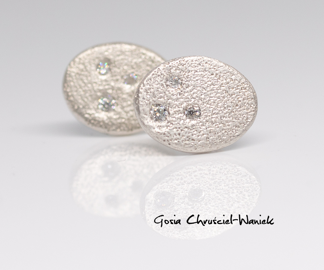 Kolczyki wykonane ręcznie ze srebra pr. 925, z małymi moissanitami.