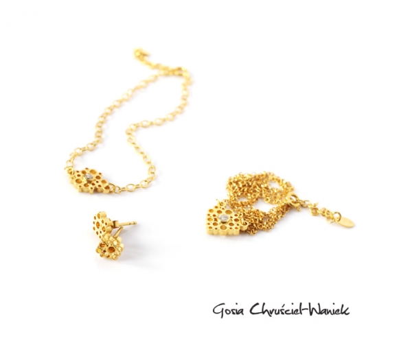 Ażurowe kolczyki wykonane ręcznie ze srebra złoconego 24K złotem.