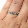 Pierścionek z kolekcji Symbiosis wykonany ze srebra pr. 925 z pięknym hodowanym aleksandrytem (beryl) o średnicy 2,5mm.