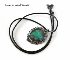 Materiały: srebro, labradoryt, cyrkonie