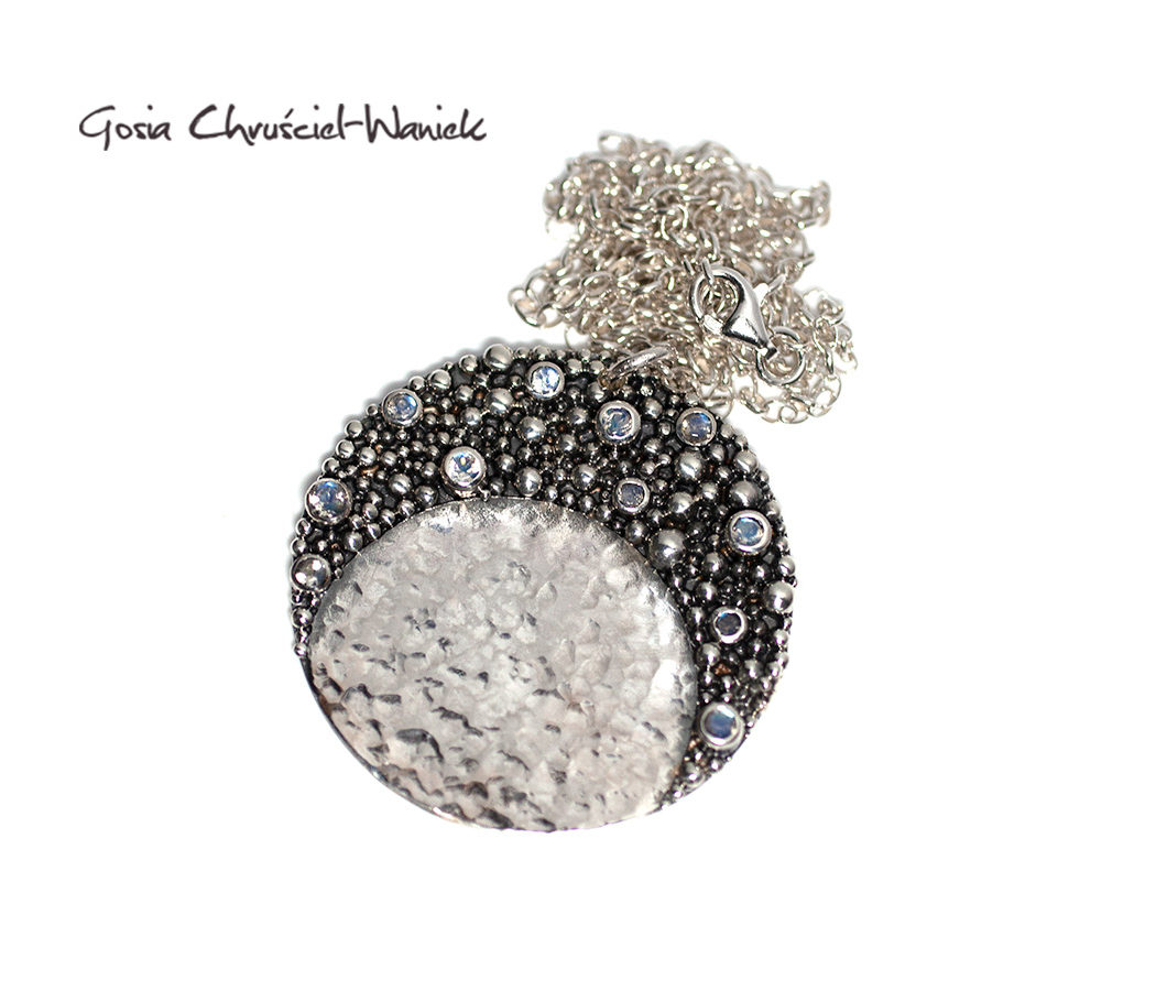 Okazały naszyjnik wykonany ręcznie ze srebra pr. 925 z kamieniami księżycowymi.