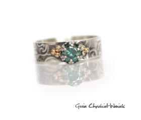 Pierścionek wykonany na zamówienie ze srebra pr. 930 (obrączka), złota pr. 585 (oprawa kamienia) z pięknym owalnym moissanitem.