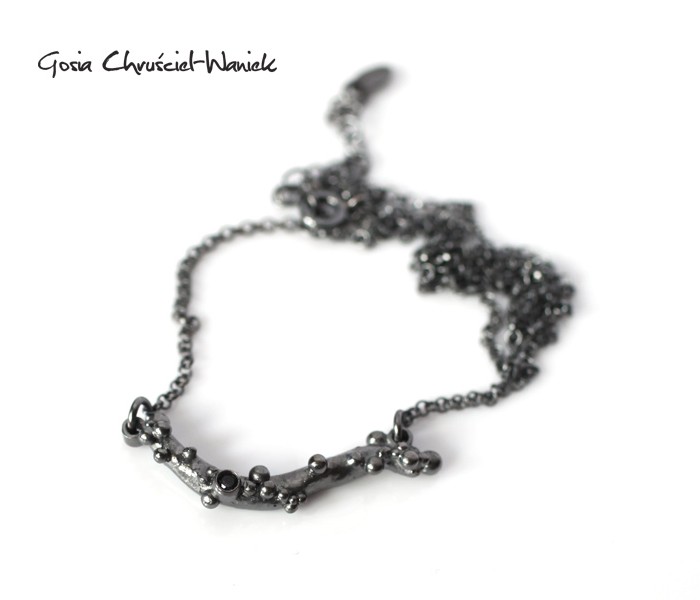 Naszyjnik wykonany ze srebra pr. 925 z kryształem Swarovskiego w kolorze black diamond.