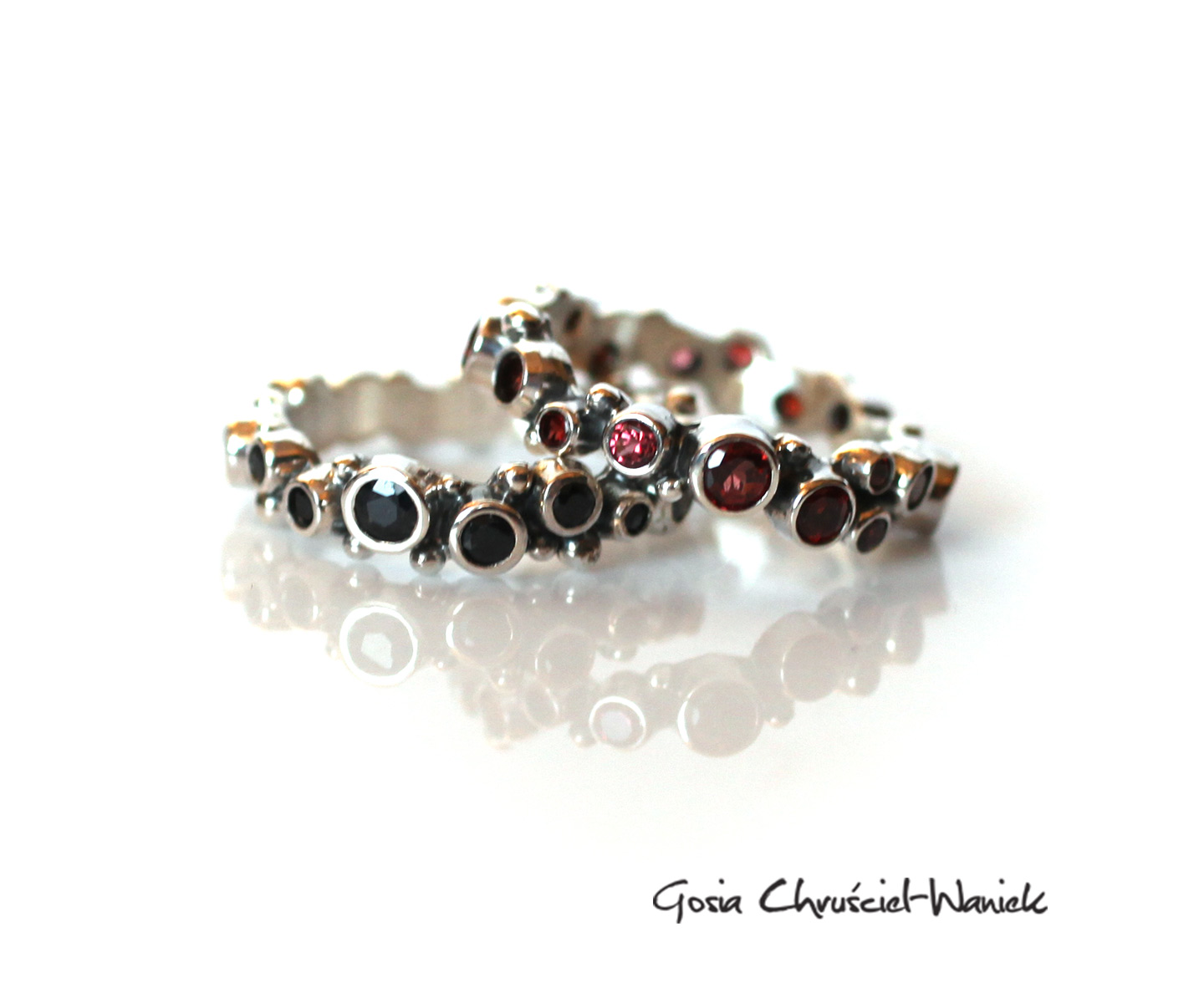 Srebrne obrączki z szafirami i granatamiSzafiry i granaty w srebrzeObrączka z czarnymi szafirami