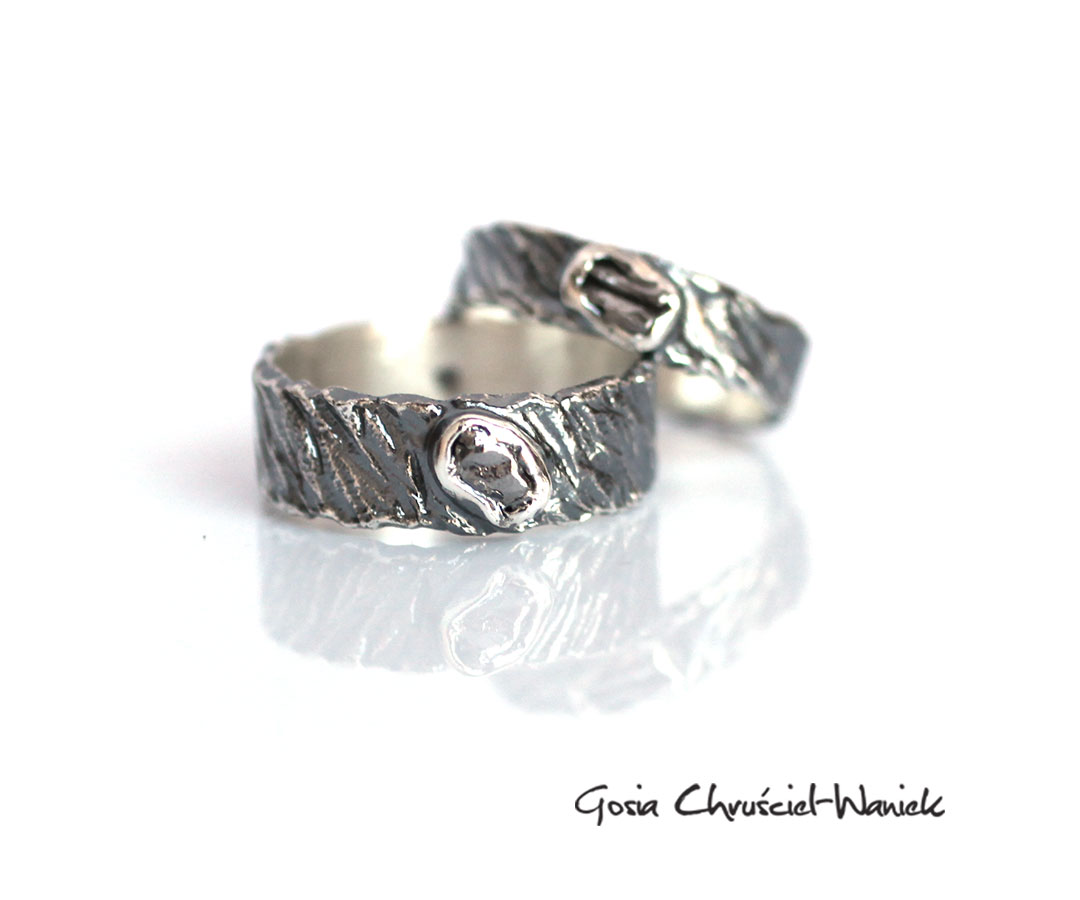 Obrączki wykonane ręcznie ze srebra pr. 925 z meteorytami Campo Del Cielo, które zostały odnalezione w 1576r na terenie Argentyny. Spadły na ziemię ok 2000 lat p.n.e.
