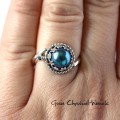 Pierścionek wykonany ręcznie ze srebra pr. 925 i 999 orz perły słodkowodnej w kolorze turkusowym i topazu London Blue o średnicy 2mm. Praca oksydowana i polerowana. Rozmiar jubilerski 14-15.