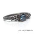 Pierścionek wykonany ze srebra pr. 925 z pięknym, szafirowym moissanitem o średnicy 4mm.