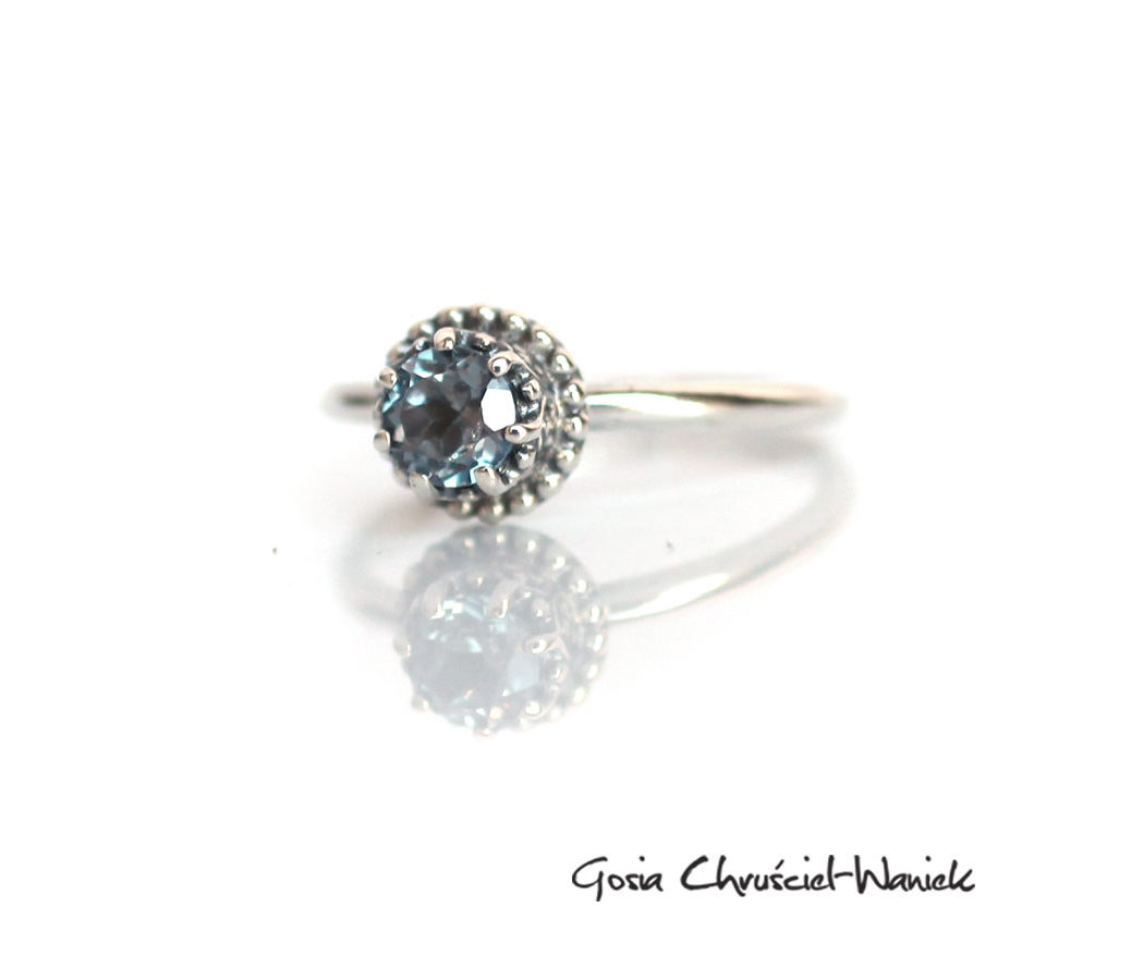 Pierścionek wykonany ze srebra pr. 925 z syntetycznym aleksandrytem (korund) o średnicy 5mm.