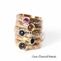 Pierścionek wykonany ze srebra pr. 999, ze stopu gold-filled oraz rodolitu o szlifie rozetowym (4mm). Rozmiar 13,5-14.