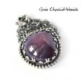 Naszyjnik wykonany ręcznie ze srebra pr.925 i 999 oraz naturalnego rubinu. Kamień ma długość ok 20mm. Rubin ubrałam w ażury i kuleczki. Długość całkowita wisiora ok 23mm. Zawieszka tuba została dolutowana do tylnej części wisiora i jest niewidoczna z przodu. Kamień zawiesiłam na delikatnym łańcuszku o długości ok 56cm. Praca oksydowana, przetarta i wypolerowana.