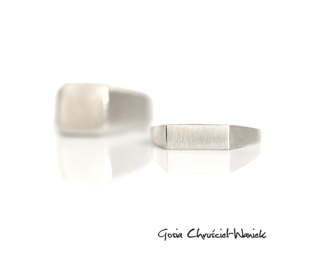 Pierścionek w formie sygnetu wykonany ze srebra pr. 925. Srebro satynowane, częściowo wybłyszczone.