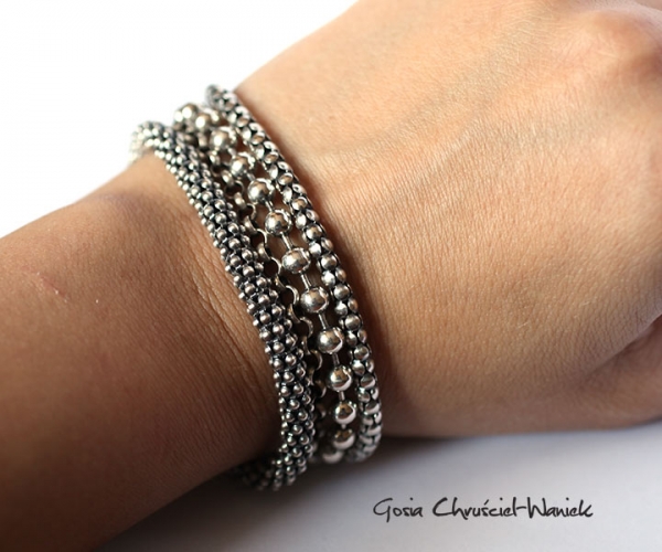 Bransoleta wykonana ze srebra pr. 925 z zawieszką z białą cyrkonią. ¦rednica bransolety ok 4mm. Oksydowana i polerowana. Długość 20,5cm + 2,5cm do regulacji (możliwość dopasowania długości do wymagań klienta). Bransoletę można nosić samą lub łączy z innymi.
