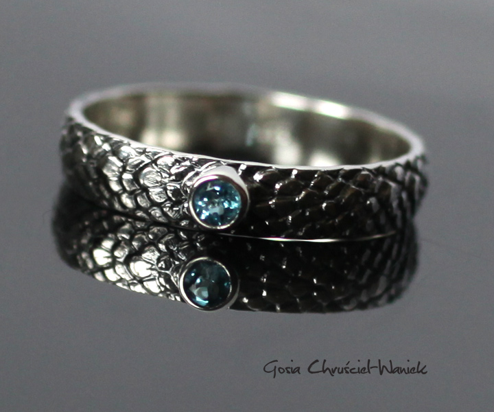Obrączka wykonana ze srebra pr. 925 z topazem Swiss Blue o średnicy 2,5mm (0,1ct).