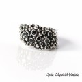 Pierścionek w formie sprężynki wykonany ze srebra pr. 925 i czarnych cyrkonii.