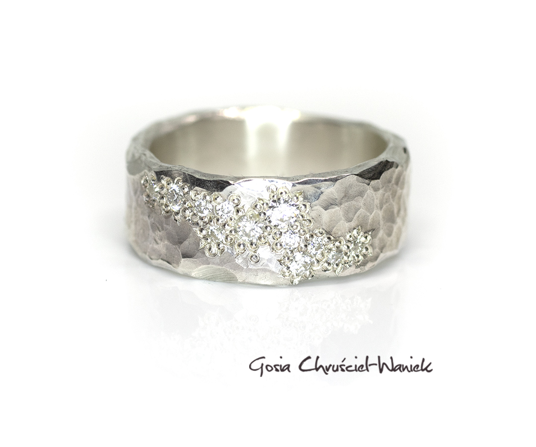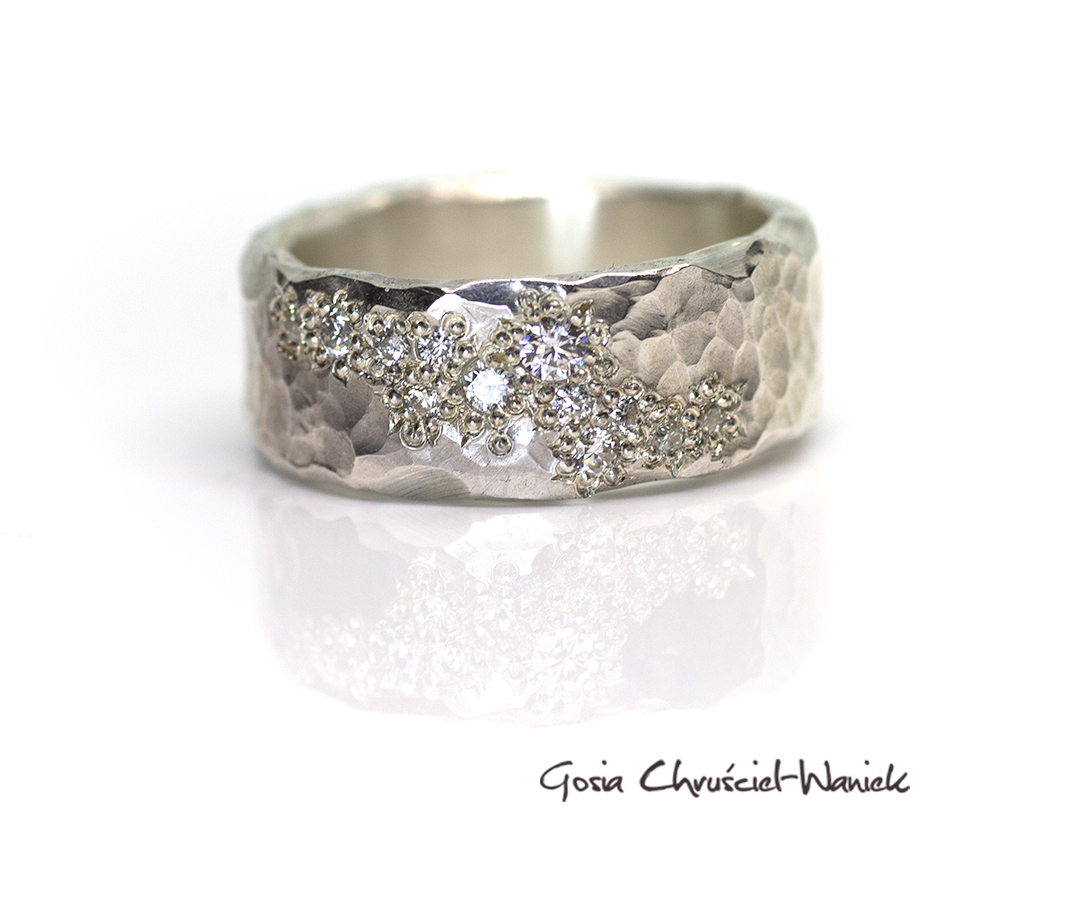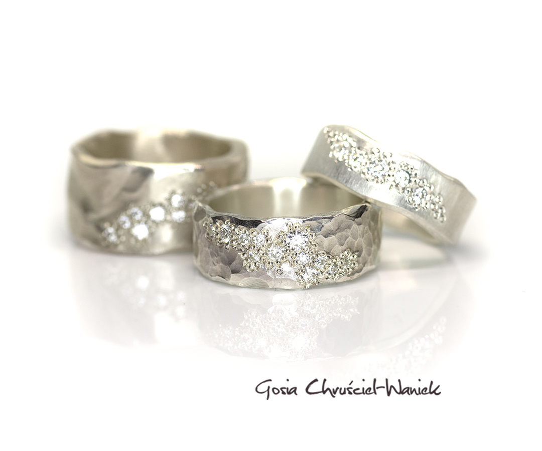 Organiczna, Autorska oprawa sprawia, że kamienie wyglądają jakby wyrastały z faktury metalu, przypominają rozsypany gwiezdny pył lub żyłę kruszcu w skale macierzystej.