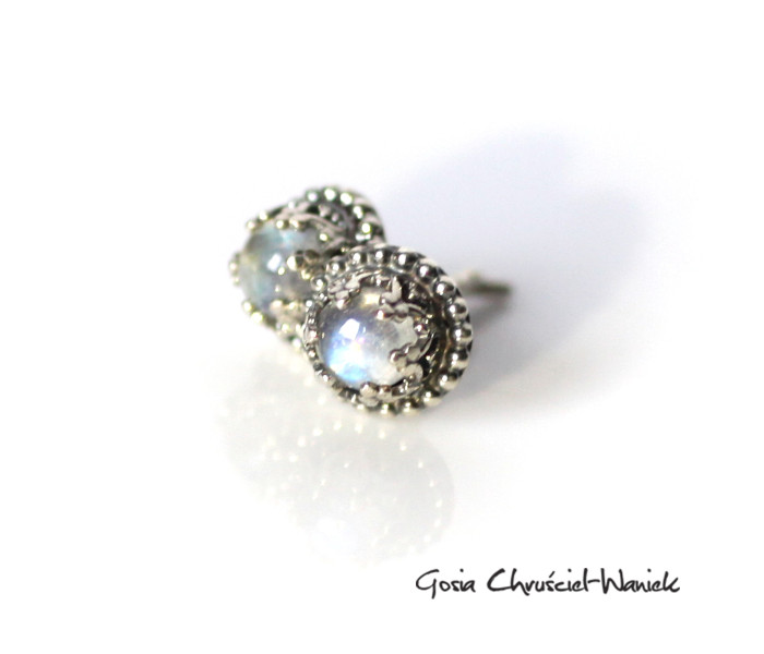 Kolczyki wykonane ze srebra pr. 925 z pięknymi, opalizującymi kamieniami księżycowymi.