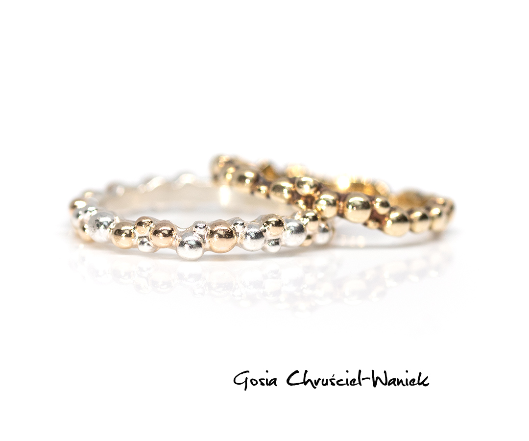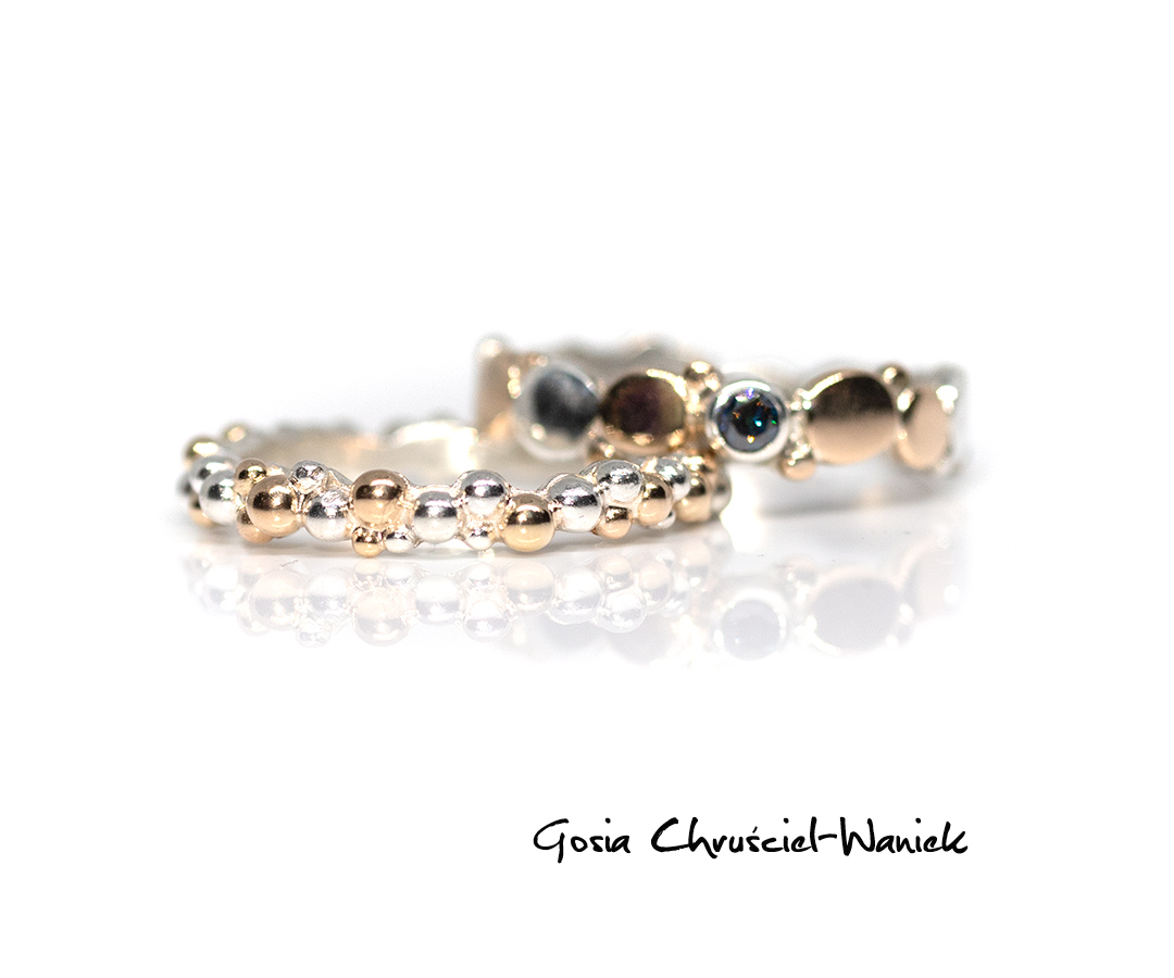 Obrączka wykonana na zamówienie ze srebra pr. 925 i złóta pr. 585.