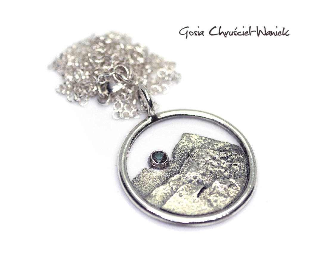 Srebrny naszyjnik z górami i z aleksandrytem