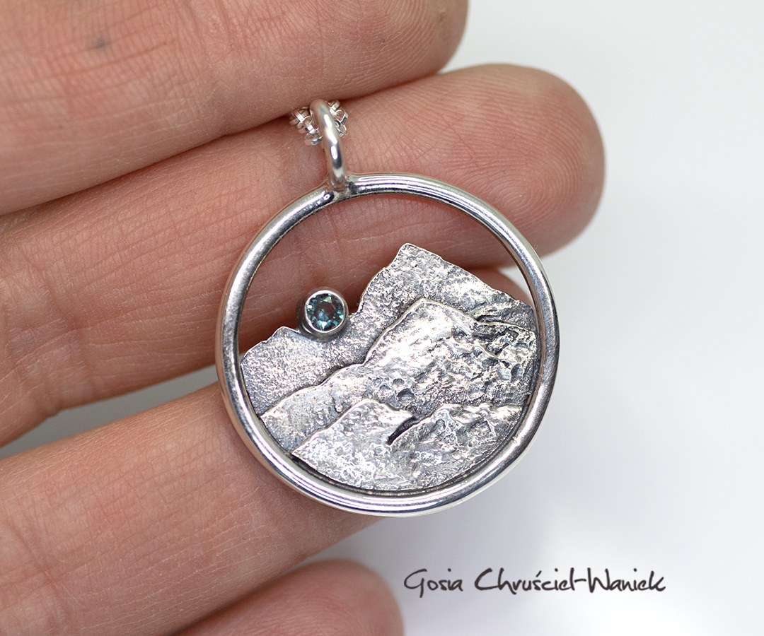Naszyjnik z górami i zmieniającym kolor aleksandrytem