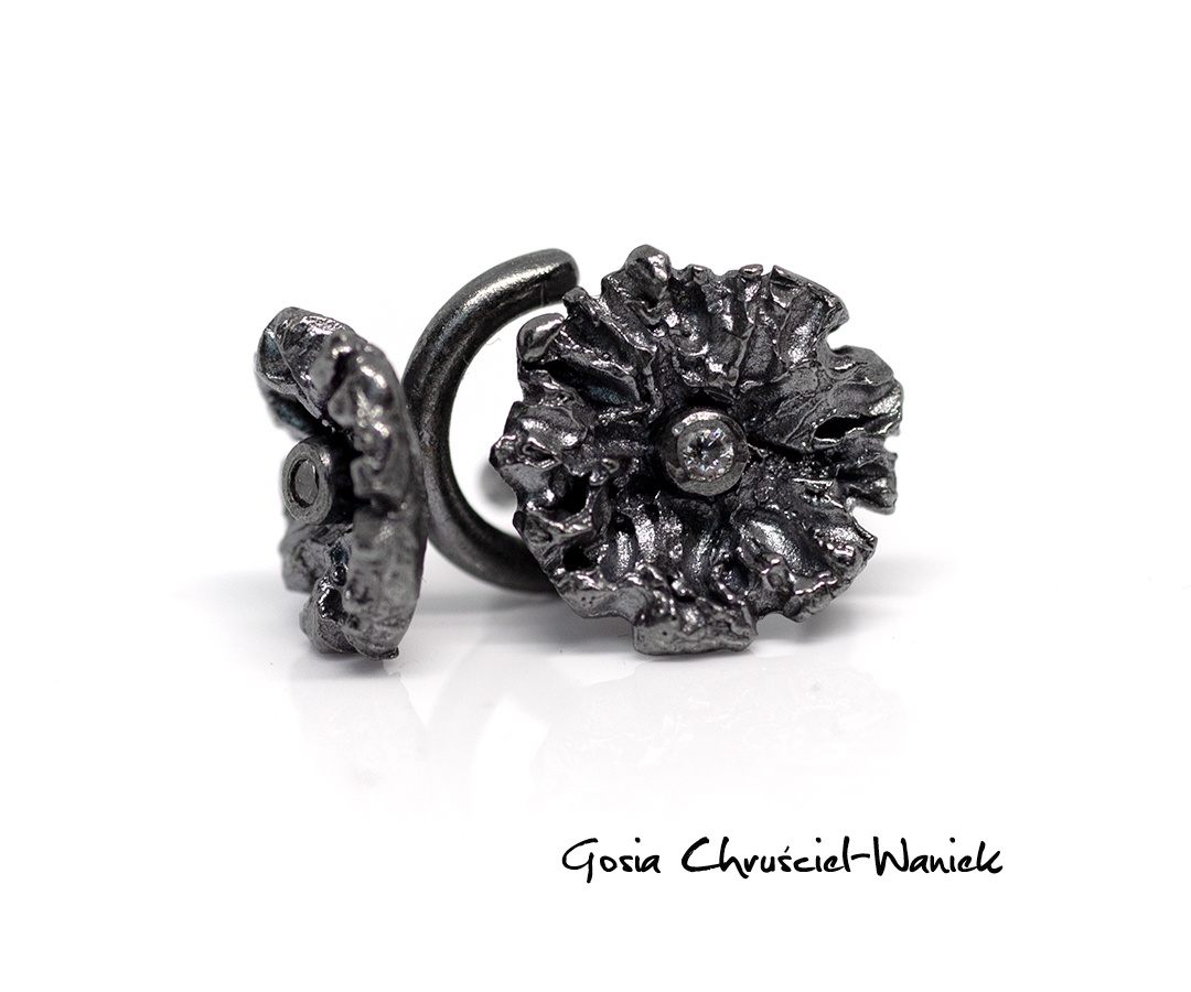 Kwiat ma średnicę ok 13 mm i został ozdobiony cyrkonią.