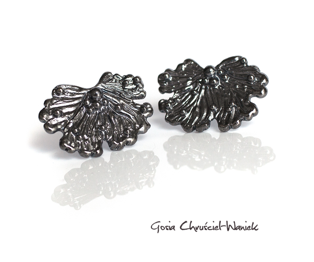 Kolczyki wykonane ze srebra pr. 925, oksydowane.