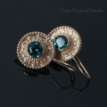 Kolczyki wykonane z 18K różowego złota (pr. 750), z naturalnymi topazami London Blue o średnicy 8mm.