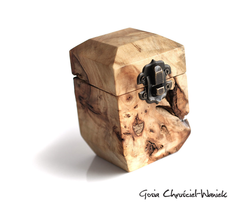 Pudełko wykonane z topoli, uzupełnione częściowo żywicą epoksydową. Bardzo efektowne.