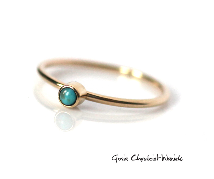 Pierścionek wykonany na zamówienie z żółtego złota pr. 585 z naturalnym turkusem o średnicy 2,5mm.